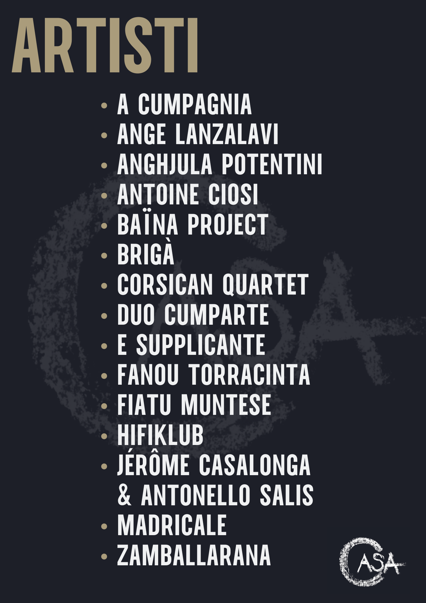 CASA Éditions, éditeur de musique corse, world, jazz, classique et contemporaine, est né en 1997 d'une aventure musicale commencée à Pigna, en Corse, trente ans plus tôt avec l'association E Voce di u Cumune, creuset de tous les élans, recherche, formation, expérimentation, facture instrumentale, échanges avec les musiciens et les cultures d’ailleurs.