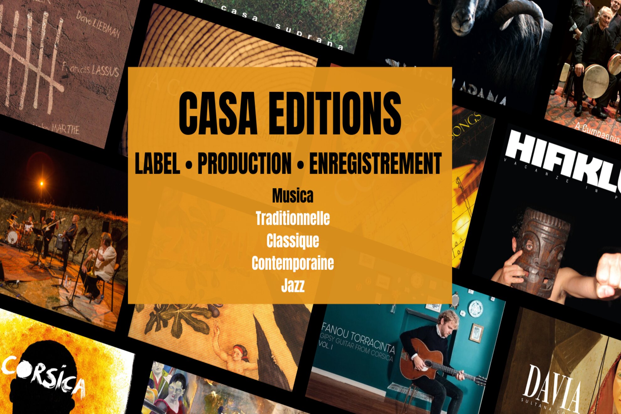 Label de musique indépendant, CASA Éditions est un éditeur de musique Corse, World, Jazz, Classique et Contemporaine. De nombreux artistes et maisons de disques corses, nationaux ou internationaux viennent enregistrer au studio en collaboration avec le label. En plus de la réalisation d’enregistrements sonores pour des films, pièces de théâtre et publicités, CASA Éditions auto-produit une discographie importante de musiques traditionnelles de Méditerranée, musiques du monde, jazz, musiques sacrées de tradition orale ou écrite, médiévale, baroque ou contemporaine.